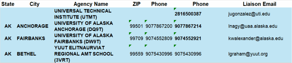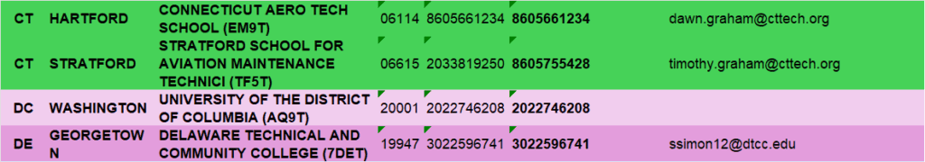 List of schools at the bottom of page…
